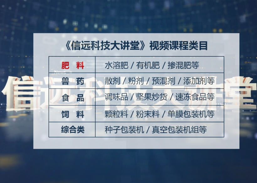 該視頻邀請信遠科技各部門的資深工程師進行講解,每周更新一期。課程暫推50期,內(nèi)容涵蓋了肥料、化工、獸藥、食品、飼料、種子等多個行業(yè)。每期課程將會通過信遠科技企業(yè)微信公眾號、視頻號、抖音號發(fā)布播出,同時也會在百度、騰訊、頭條、愛奇藝、土豆等平臺同步上線播出,歡迎廣大網(wǎng)友和客戶隨時點擊進入觀看。