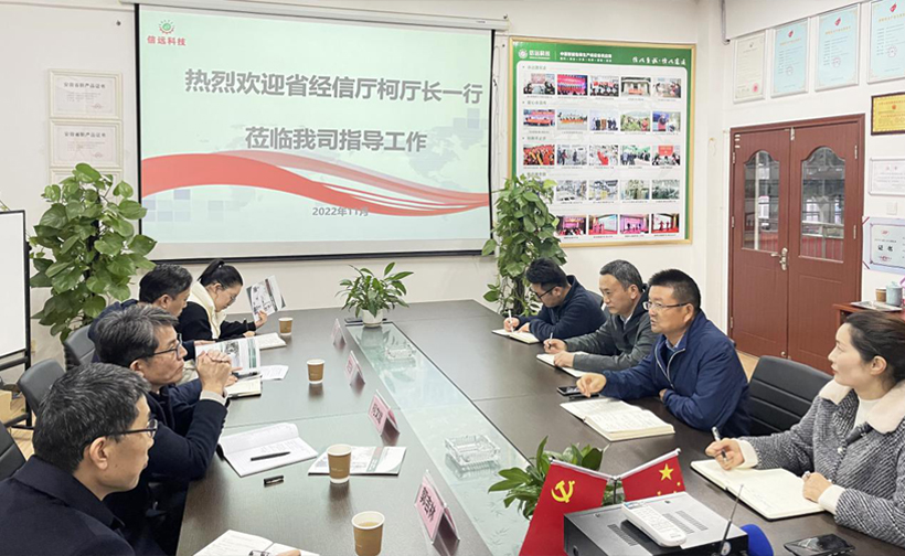 11月22日,安徽省經信廳黨組成員、副廳長柯文斌,省經信廳工業(yè)互聯(lián)網處副處長劉三新, 合肥市經信局工業(yè)互聯(lián)網處處長郭吉林,省經信廳工業(yè)互聯(lián)網四級主任科員汪沁紫一行來到安徽信遠包裝科技有限公司進行專題調研。信遠科技董事長倪合青及公司相關領導熱情接待了柯廳長一行。