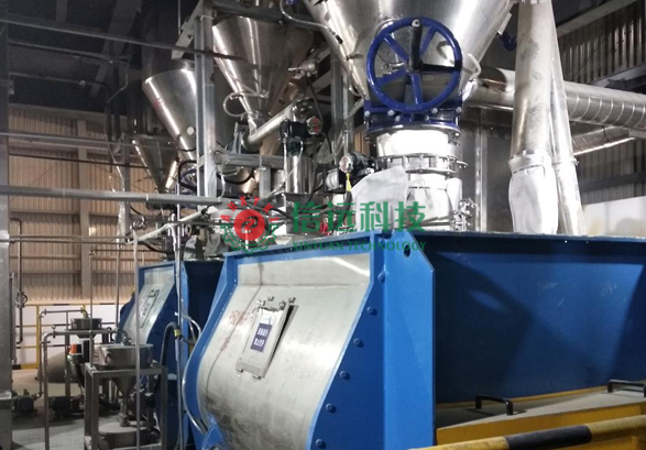 配料、混料、包裝、機器人碼垛于一體全自動生產(chǎn)設備