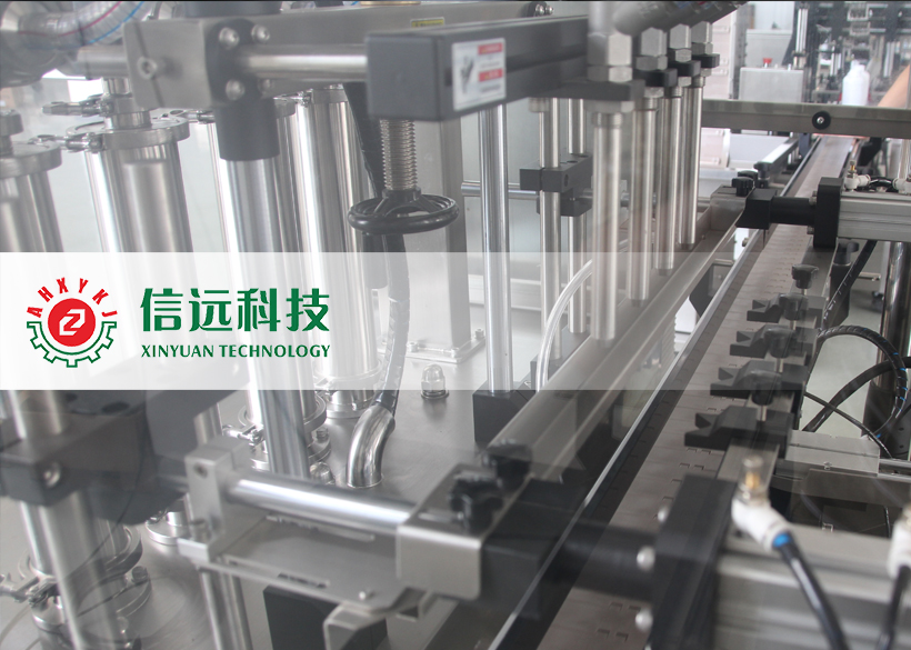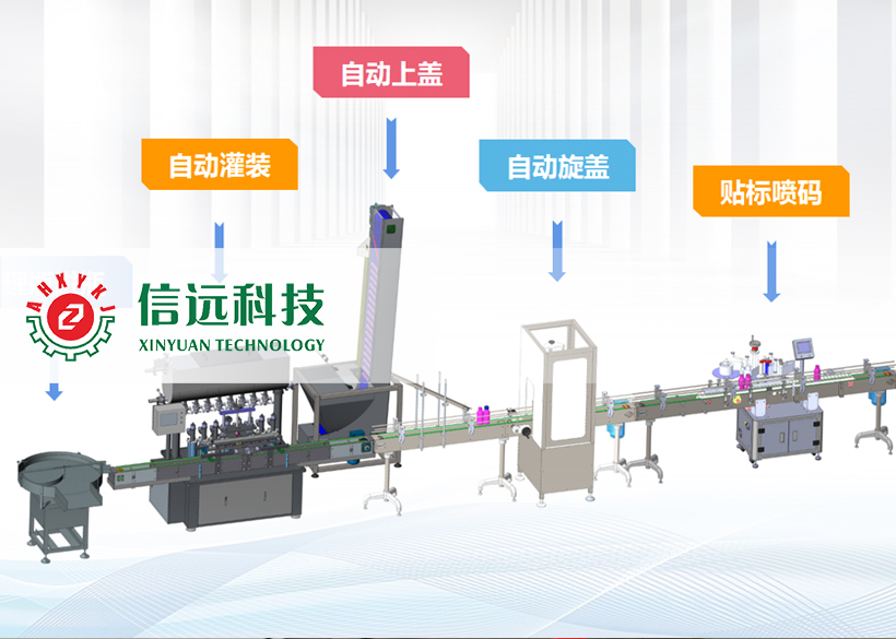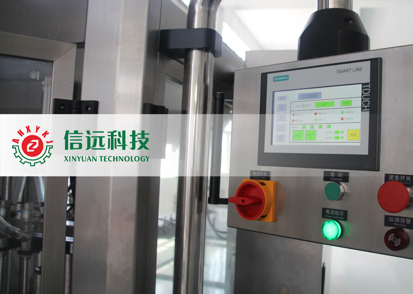 信遠(yuǎn)科技瓶裝液體全自動(dòng)灌裝機(jī)組,由理瓶機(jī)、灌裝機(jī)、上蓋/旋蓋機(jī)和貼標(biāo)噴碼機(jī)組成??梢怨嘌b單瓶容量在50-1000ml范圍之間的液體物料,生產(chǎn)企業(yè)可以根據(jù)自己的需要,選擇不同型號(hào)的灌裝機(jī)和配套輔機(jī)。這套機(jī)組設(shè)備采用不銹鋼材質(zhì)設(shè)計(jì)制造,適用于食品、化工、醫(yī)藥等行業(yè)不帶氣體的流體、半流體物料的計(jì)量灌裝,具有自動(dòng)完成理瓶、進(jìn)瓶、定位、灌裝、出瓶、上蓋、旋蓋、鋁箔封口、貼標(biāo)、噴碼等一系列功能。