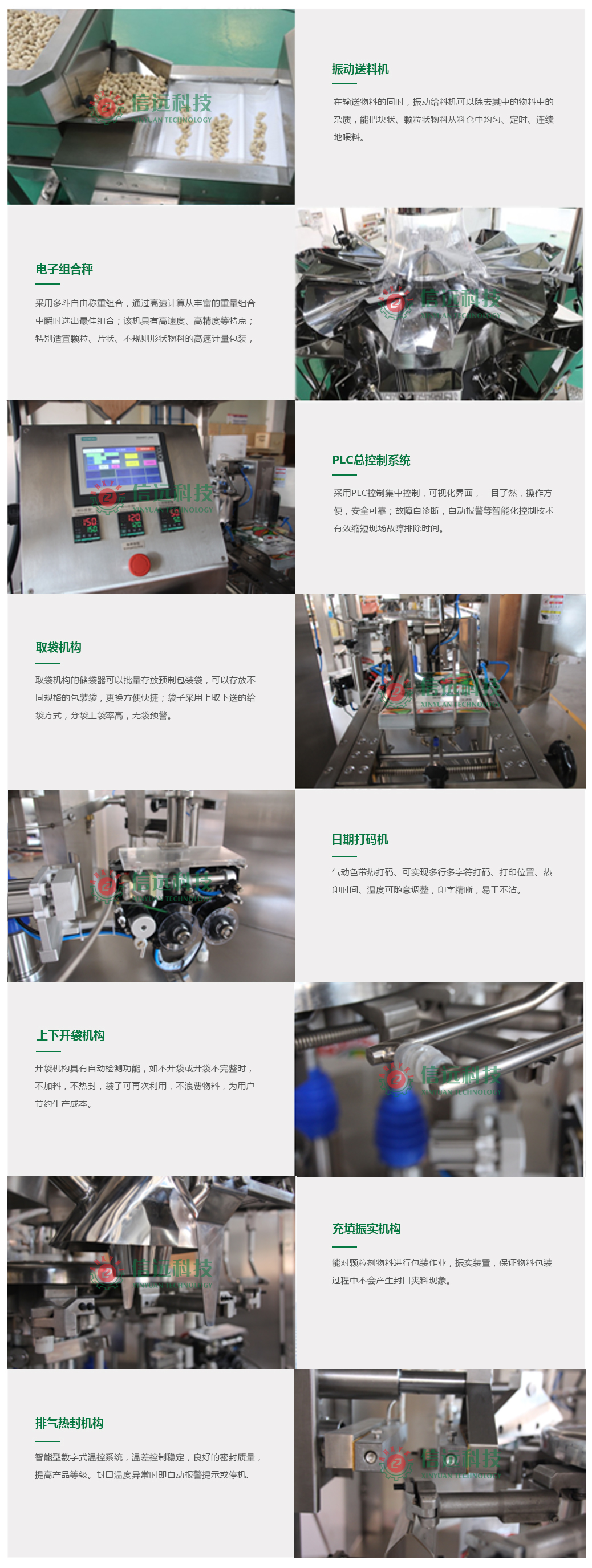 種子顆粒給袋式包裝機(jī)機(jī)組,是由密閉Z型提升機(jī)、電子計(jì)量組合秤、多工位旋轉(zhuǎn)式給袋包裝機(jī)和成品輸送機(jī)組成。可以包裝單袋克重在30-5000g范圍之間的顆粒狀物料,生產(chǎn)企業(yè)可以根據(jù)自己的需求選擇不同的包裝機(jī)型號(hào)。這套機(jī)組設(shè)備適合各種顆粒狀、片狀、條狀、圓狀、塊狀及不規(guī)則形狀等物料的定量包裝,具有自動(dòng)完成送料、計(jì)量、給袋、充填、封口、打印、計(jì)數(shù)、輸送等一系列功能,是食品、化工、農(nóng)資等行業(yè)提高包裝生產(chǎn)效率,打造綠色環(huán)保車(chē)間,提升包裝檔次的新型自動(dòng)化裝備。