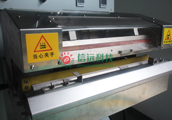 該機主要組成件:手搖升降機構(gòu)、機架、前后齒形加熱塊及加熱管、封口氣缸動作機構(gòu)、電氣控制箱等組成。