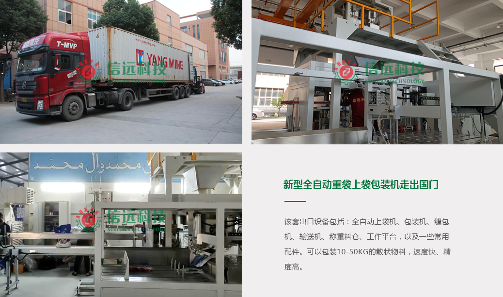 該套出口設(shè)備包括:全自動(dòng)上袋機(jī)、包裝機(jī)、縫包機(jī)、輸送機(jī)、稱重料倉、工作平臺(tái),以及一些常用配件??梢园b10-50kg的散狀物料,速度快、精度高??梢宰詣?dòng)完成取袋、上袋、套袋、夾袋、計(jì)量、充填、落袋、輸送、封口等一體化包裝作業(yè)。在幫助客戶增產(chǎn)增量、減少用工的同時(shí),保證了產(chǎn)品質(zhì)量和生產(chǎn)標(biāo)準(zhǔn)化。