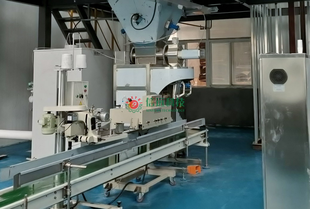 安徽信遠包裝科技有限公司設(shè)計制造的粉料包裝秤,是一款機電一體化的高新技術(shù)產(chǎn)品,適用于包裝20-50kg的粉性物料。該機由機架、供料螺旋、補料螺旋、稱重系統(tǒng)、出料口、夾袋松袋、除塵系統(tǒng)、電氣控制系統(tǒng)等組成。采用大、小二級加料,落差自動修正、零點自動跟蹤、過沖檢測與抑制功能。高精度的稱重傳感器,計量精度高、性能穩(wěn)定。裝包數(shù)、裝包量可以自動統(tǒng)計。氣動執(zhí)行機構(gòu),氣缸進、出口壓力可調(diào),工作更加可靠,包裝下料口,有除塵風(fēng)機進風(fēng)口裝置,無污染。與物料接觸部件選用不銹鋼,抗腐蝕,設(shè)備使用壽命長。