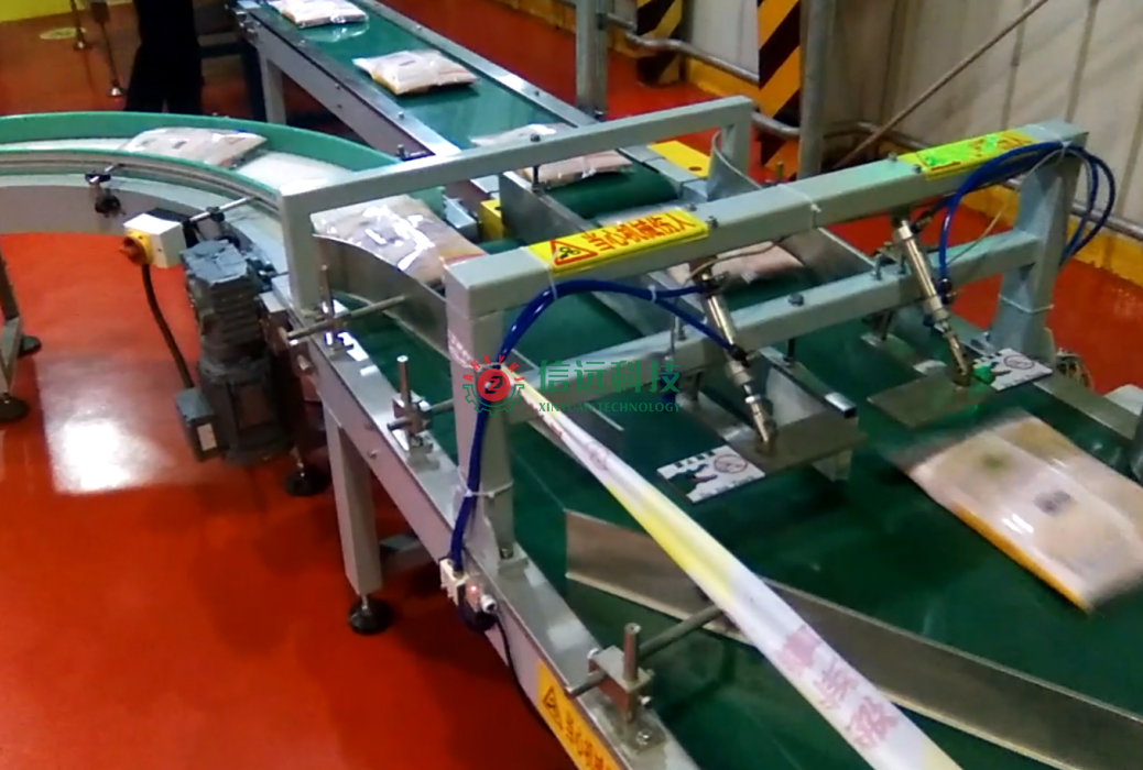 安徽信遠(yuǎn)包裝科技有限公司自主研發(fā)設(shè)計(jì)的全自動(dòng)重袋二次包裝生產(chǎn)線,是一種小袋裝大袋的二次包裝設(shè)備。包括小袋產(chǎn)品的包裝輸送機(jī)構(gòu)、設(shè)于小袋包裝輸送機(jī)構(gòu)一側(cè)的底部支撐架、傾斜式連接在底部支撐架上的分散輸送機(jī)構(gòu)、連接在底部支撐架上端的計(jì)數(shù)灌裝機(jī)構(gòu)以及連接在底部支撐架側(cè)部的大袋夾持機(jī)構(gòu),小袋包裝輸送機(jī)構(gòu)的輸出端口位于分散輸送機(jī)構(gòu)輸入端口的上方,分散輸送機(jī)構(gòu)的輸出端口位于計(jì)數(shù)灌裝機(jī)構(gòu)輸入端口的上方,計(jì)數(shù)灌裝機(jī)構(gòu)的輸出端口位于大袋夾持機(jī)構(gòu)輸入端口的上方等組件結(jié)構(gòu)。在小袋有序落入大袋內(nèi)后,自動(dòng)完成灌裝、縫包、碼垛工作。