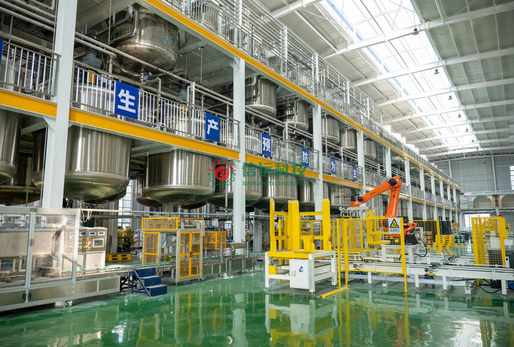 安徽信遠包裝科技有限公司全自動涂料生產(chǎn)線,采用立體空間布置,由上往下式流程,全自動化操作,自動進料、自動稱重計量、高速分散、循環(huán)研磨、真空消泡、自動過濾、自動灌裝碼垛等整套工藝流水工序完成,提高了生產(chǎn)效率,減少了勞動強度。該生產(chǎn)線采用全封閉操作,實現(xiàn)了人機分離進行分散,研磨,調(diào)漆,不會造成環(huán)境污染,同時避免了化學(xué)物質(zhì)對人體的侵害。該套設(shè)備可以生產(chǎn)內(nèi)外墻乳膠漆、真石漆、質(zhì)感漆、多彩漆、防水材料等多種涂料產(chǎn)品。