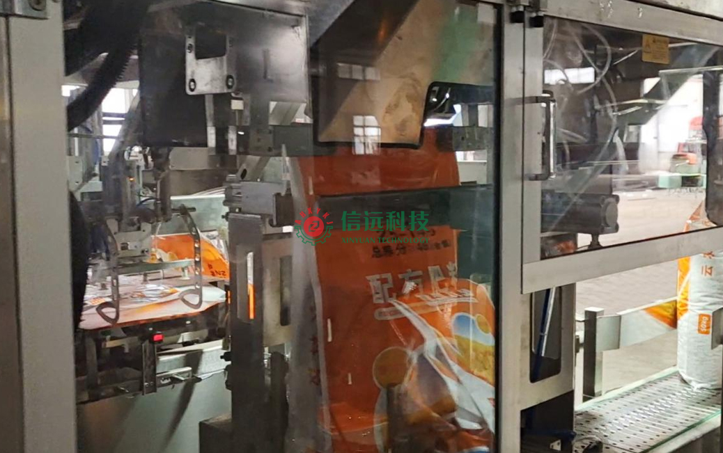 安徽信遠(yuǎn)包裝科技有限公司設(shè)計(jì)制造的摻混肥全自動包裝碼垛生產(chǎn)線設(shè)備,是一套重袋包裝碼垛系統(tǒng),由上袋機(jī)、包裝機(jī)、縫包機(jī)、噴碼機(jī)、輸送理包系統(tǒng)和碼垛機(jī)器人等裝置組成,可以自動完成取袋、上袋、開袋、套袋、夾袋和計(jì)量充填,袋內(nèi)重量達(dá)到設(shè)定值時,自動停止充填并松袋落袋,抱袋裝置自動移栽至縫包機(jī)前,完成包裝袋封口。成品袋在輸送過程中,自動完成倒包、振實(shí)、壓平等理包整形后,機(jī)器人進(jìn)行抓包碼垛,叉車搬運(yùn)入庫。