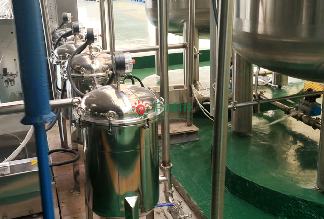 下面我們?cè)僦v一下與儲(chǔ)液罐配套比較緊密的一種設(shè)備:雙聯(lián)過(guò)濾器,也稱雙聯(lián)切換過(guò)濾器,該設(shè)備置于成品儲(chǔ)液罐的前端,作用是把螯合乳化后的原液進(jìn)行標(biāo)準(zhǔn)化過(guò)濾,然后輸送至成品儲(chǔ)液罐內(nèi)暫存。該設(shè)備由兩臺(tái)不銹鋼過(guò)濾器并聯(lián)而成,內(nèi)外表面拋光處理,濾筒內(nèi)裝有不銹鋼濾網(wǎng)和濾袋;頂部裝有放氣閥,供過(guò)濾時(shí)排放濾器內(nèi)空氣作用。上蓋與濾筒連接采用快開(kāi)式結(jié)構(gòu),清洗過(guò)濾器時(shí)不必停車,保證其連續(xù)工作,是不停車生產(chǎn)線過(guò)濾裝置的首選;連接管路采用活接或卡箍連接方式,進(jìn)出料閥門采用三通球閥啟閉,耐壓耐溫,操作靈活方便,不會(huì)出現(xiàn)料液泄漏的情況。整機(jī)具有結(jié)構(gòu)合理、密封性好、流通性強(qiáng)、過(guò)濾精度高、操作簡(jiǎn)便等諸多優(yōu)點(diǎn),是一種應(yīng)用范圍比較廣泛的多用途過(guò)濾設(shè)備。