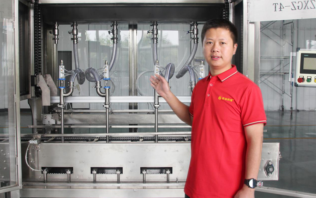 下面我們來具體講一下桶裝全自動灌裝機。該機主要由輸送輥道、緩存液缸、定位灌裝、電子稱重等幾大部分組成。進桶方式是把空桶有序放置在定位槽內(nèi),通過輥道帶動,精準輸送至灌裝頭下方,進桶的速度和間隔,與灌裝系統(tǒng)配套聯(lián)動,同步控制。該機上方設(shè)置有供料液缸,液料的進料方式為重力自流式;灌裝頭采用電機驅(qū)動下潛,邊灌裝邊提升,可有效減少泡沫產(chǎn)生;灌裝頭可左右、上下調(diào)節(jié),灌裝速度可調(diào),設(shè)計有防滴漏裝置;灌裝容量采用稱重傳感器計量方式,精度高、誤差小。該機采用PLC智能系統(tǒng)控制,具有桶體自動定位、無桶不灌裝、灌裝精度高等特點,同時具有實時監(jiān)控,實時調(diào)整和故障提示功能,可以自動完成進桶計數(shù)、計量灌裝、輸送出桶等一系列操作。